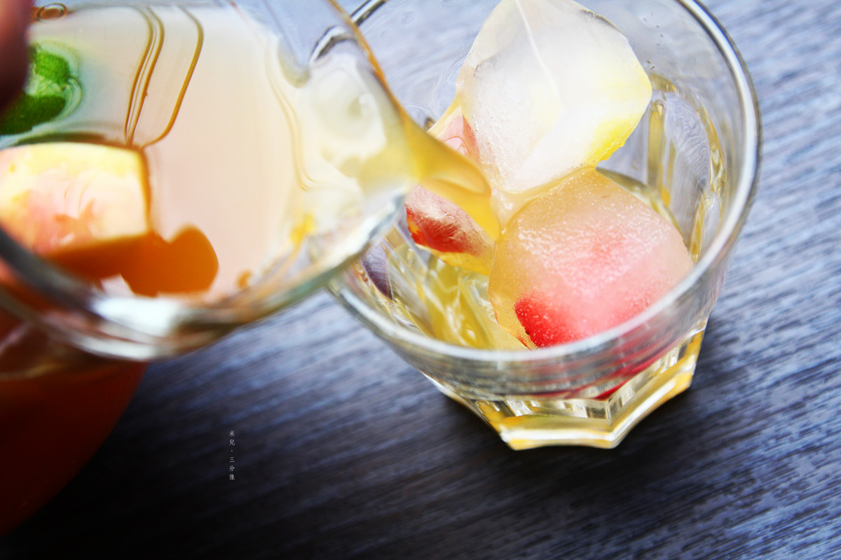 水果茶,還有附一杯水果冰塊,喝起來很綜合的水果味,偏甜,但加冰塊剛剛好,裡面有葡萄、蘋果、草莓、火龍果、柳丁、金佶、百香果、鳳梨,超多種的對吧!!!整個很豐富,而且水果都還是新鮮的喲!