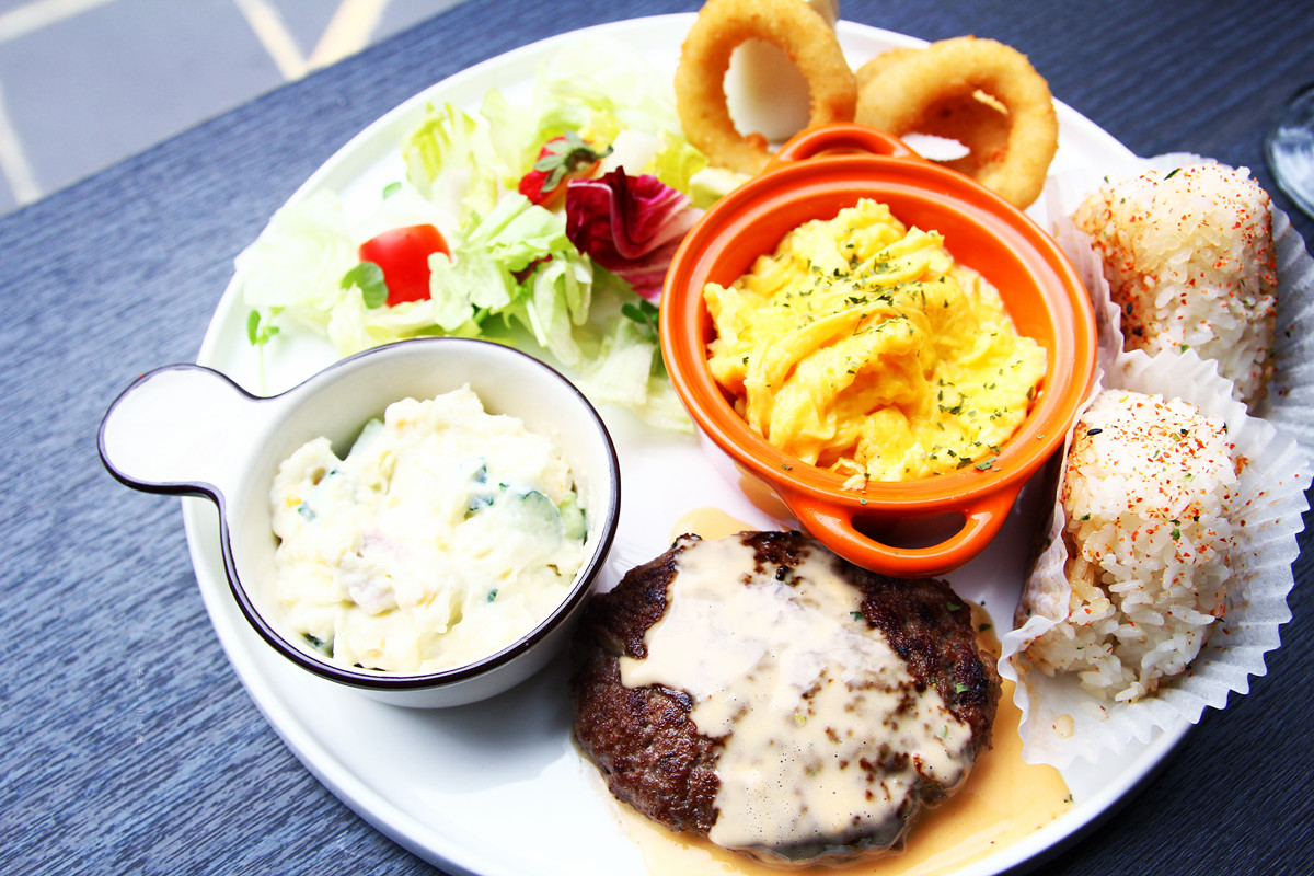 這個更豐盛的是下北澤的文青早餐,內容也非常豐富,有牛肉排、飯糰、滑蛋、馬鈴薯沙拉、生菜沙拉、洋蔥圈,真的每個人吃完都直喊吃不下XDD