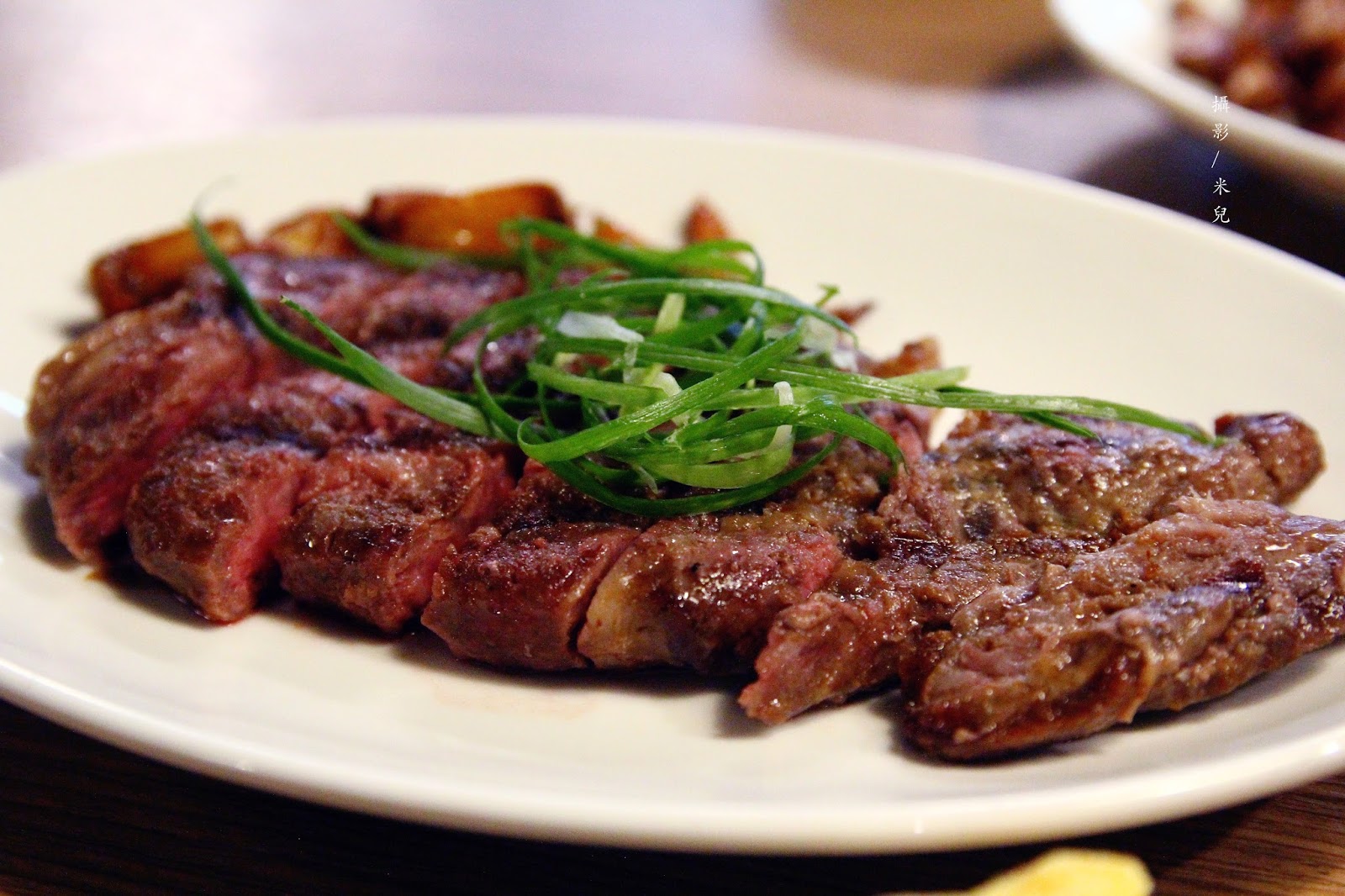 這就是點了十道火鍋料贈送的 美國安格斯雪花牛排,米兒點的是7分熟,你看那粉嫩嫩的顏色,熟度正好米兒喜歡,雖說是贈送,但份量也不少,吃得很滿足
