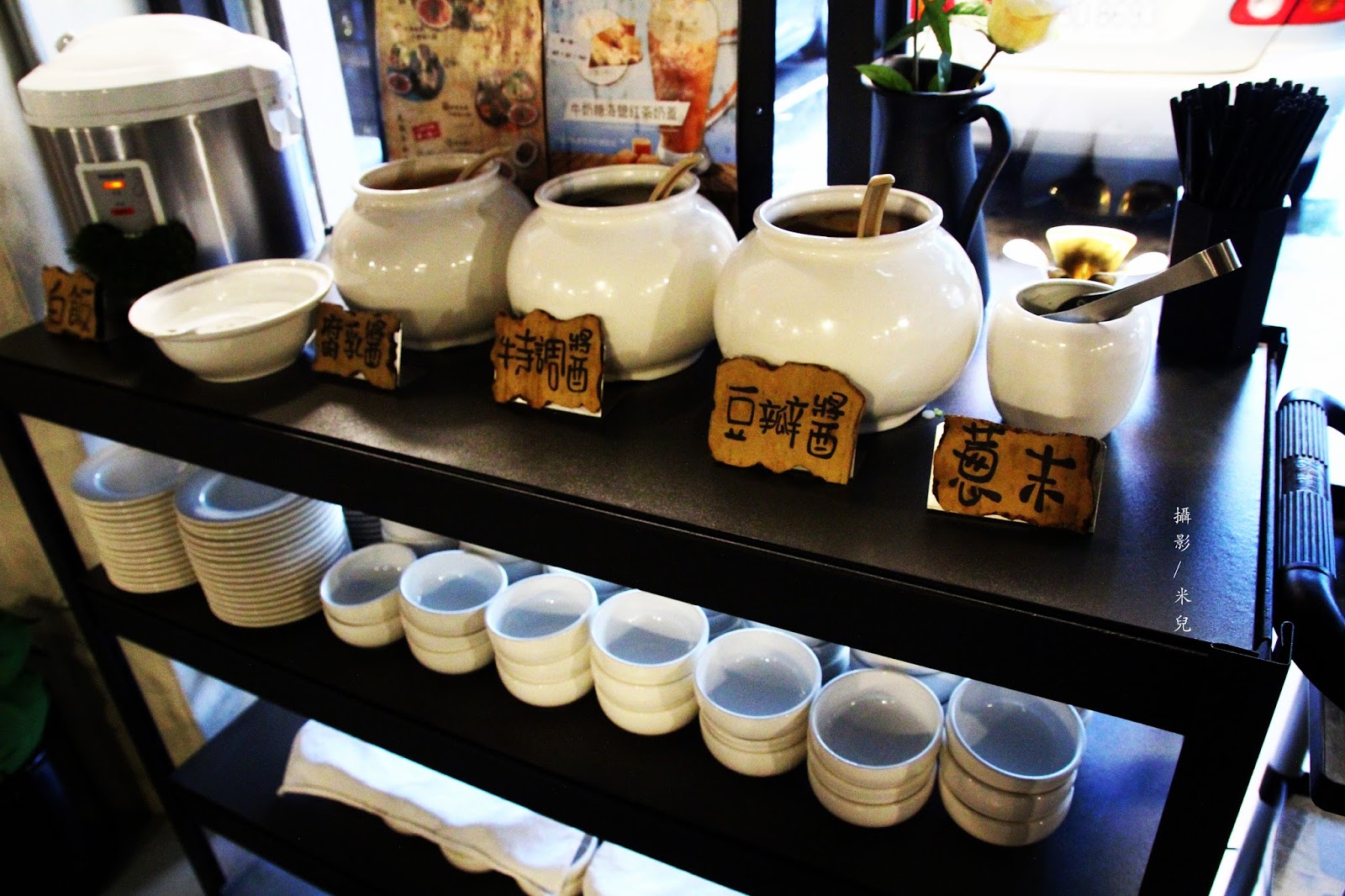 點完餐來到自助區,拿取調味料,水也是自取喲!另外白飯讓你吃免驚!!