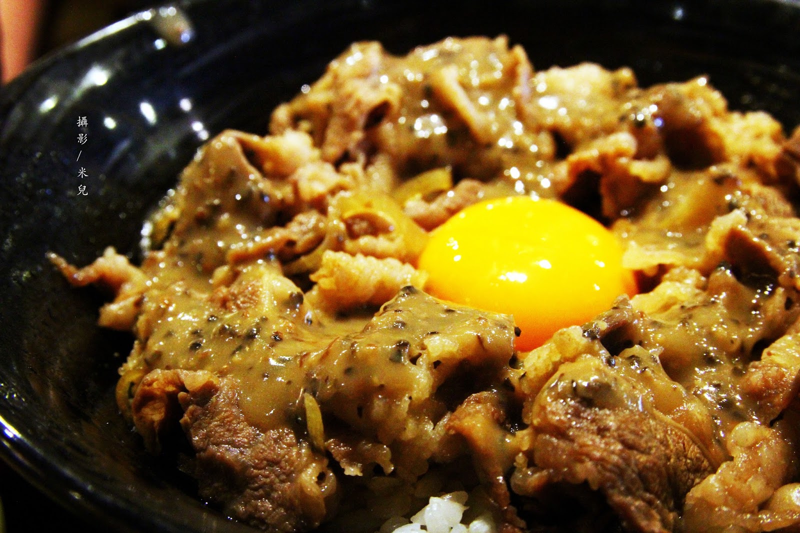 丼飯在點完餐點後10分鐘就上桌了,速度還蠻快的,首先介紹的是台式口味,嗆辣黑胡椒丼,上桌時感覺很像定食,因為都分開的,黑胡椒醬也是自己淋,米兒覺得不錯,如果怕太辣這樣可以想淋多少就自己控制