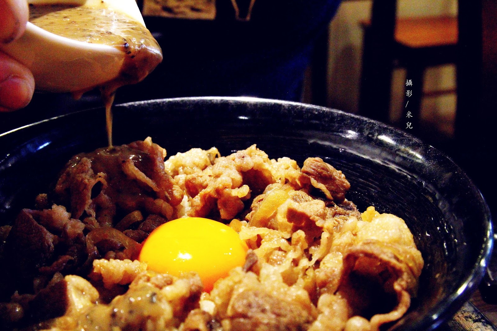 丼飯在點完餐點後10分鐘就上桌了,速度還蠻快的,首先介紹的是台式口味,嗆辣黑胡椒丼,上桌時感覺很像定食,因為都分開的,黑胡椒醬也是自己淋,米兒覺得不錯,如果怕太辣這樣可以想淋多少就自己控制