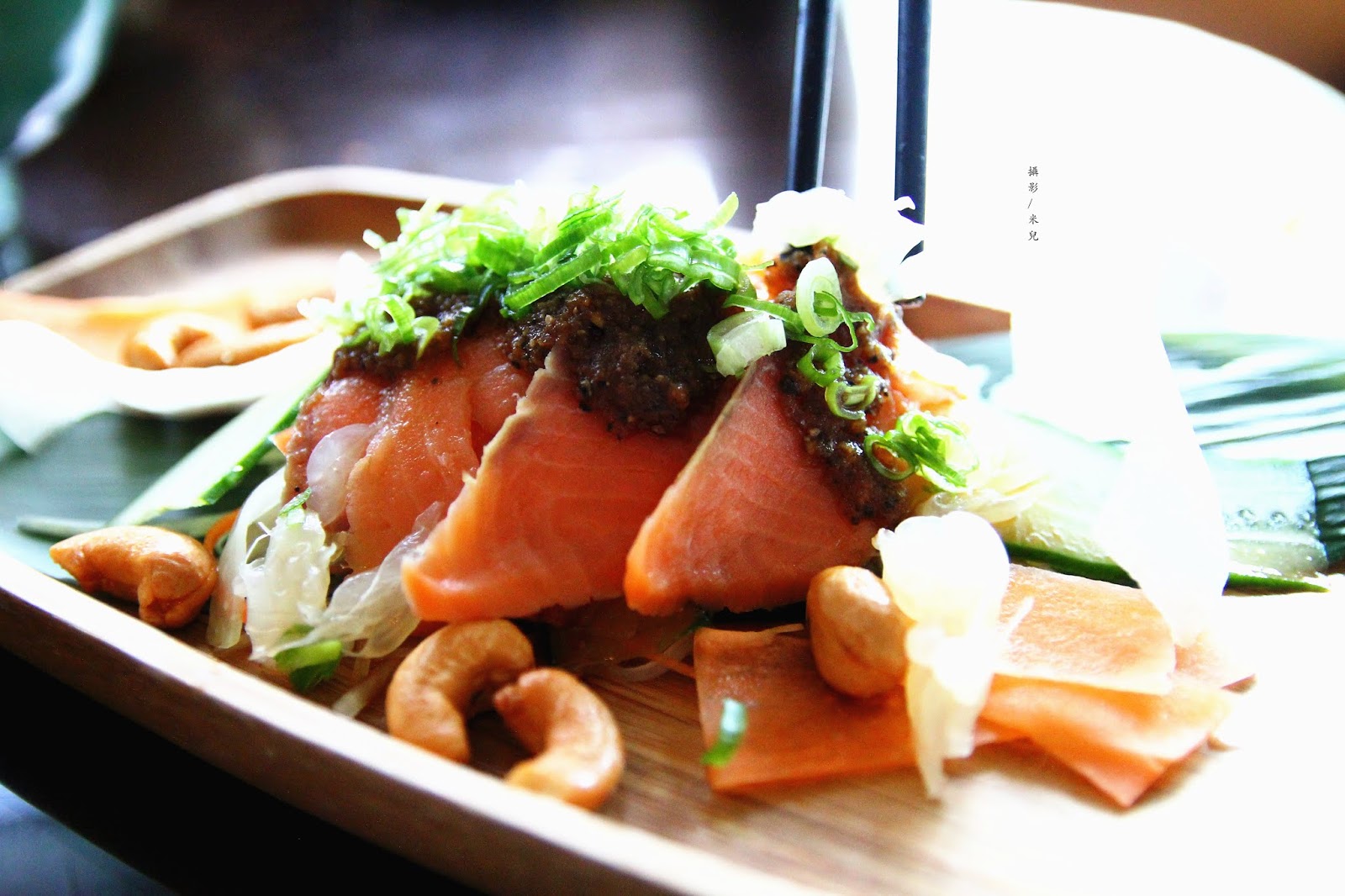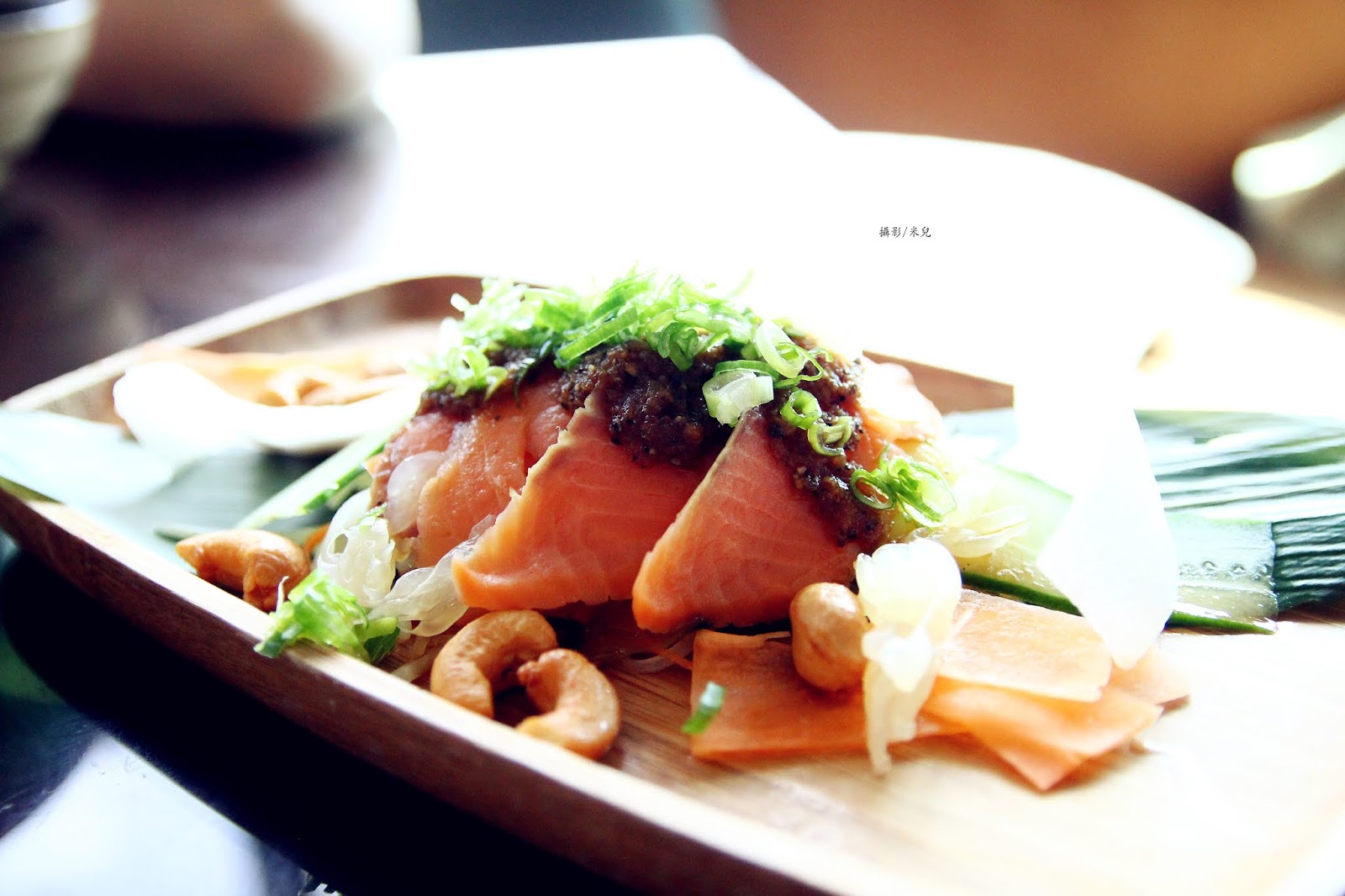 鮭魚搭配上面的生薑以及涼拌木瓜
