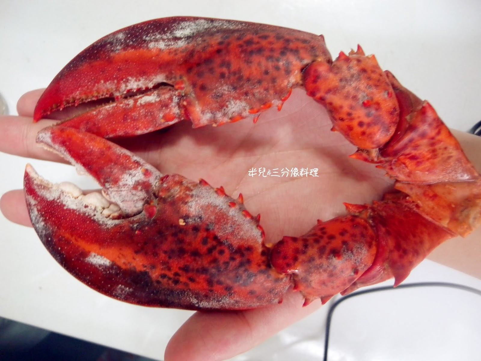 看看整隻龍蝦與米兒肥手的比例就知道 它多大隻了!
