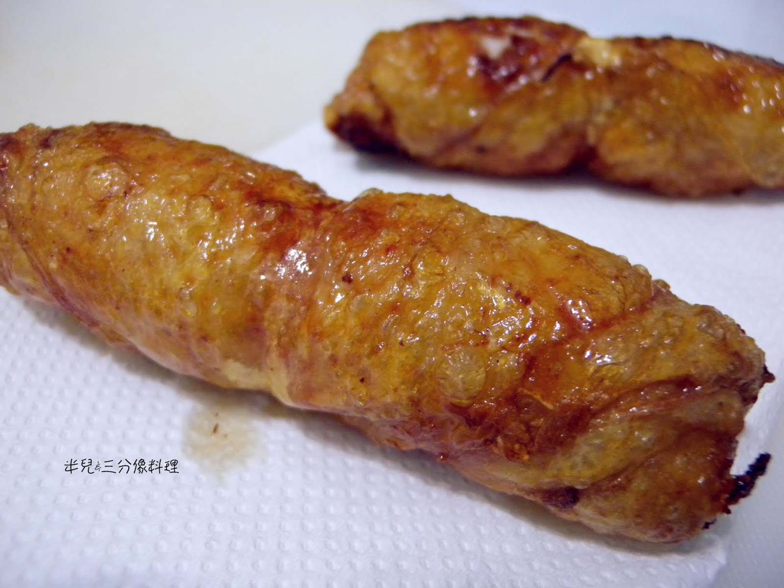 然後煎好後 起鍋 先用餐巾紙吸油