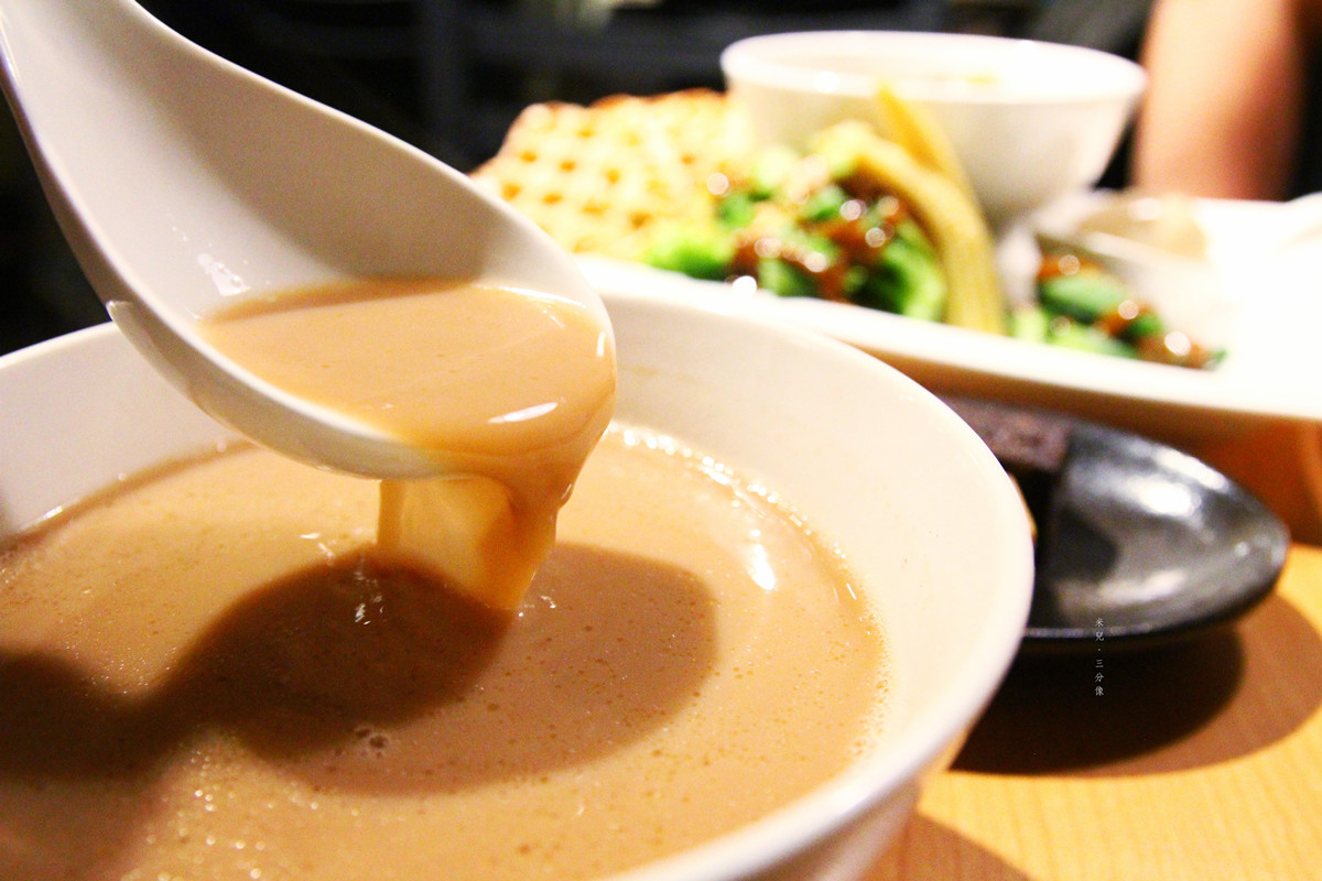 這是店裡主打的菜色,也是一道非常有特色的料理,視覺上以為是鬆餅,但它不是喲!它整體呈現是非常的豐富,就是一個套餐,旁邊像鬆餅的那是麵餅喲!店家將麵條煮熟後再用鬆餅機壓製而成,很特別的呈現方式對吧!所以連電視台都有來採訪呢!!
